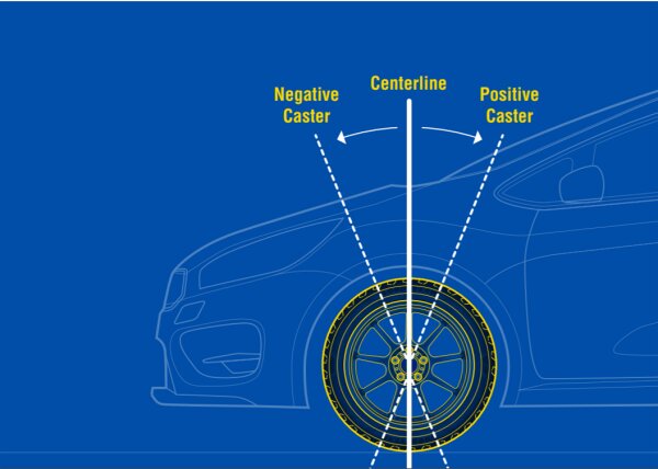 Caster angle is the vertical axis of your steered wheels which balances steering and provides stability when cornering; positive caster means that the steering axis tilts towards you while negative caster means that it tilts towards the front of your vehicle.