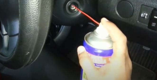 - Next, apply some lubricant to the lock cylinder to help loosen up any debris that may be stuck in there.
